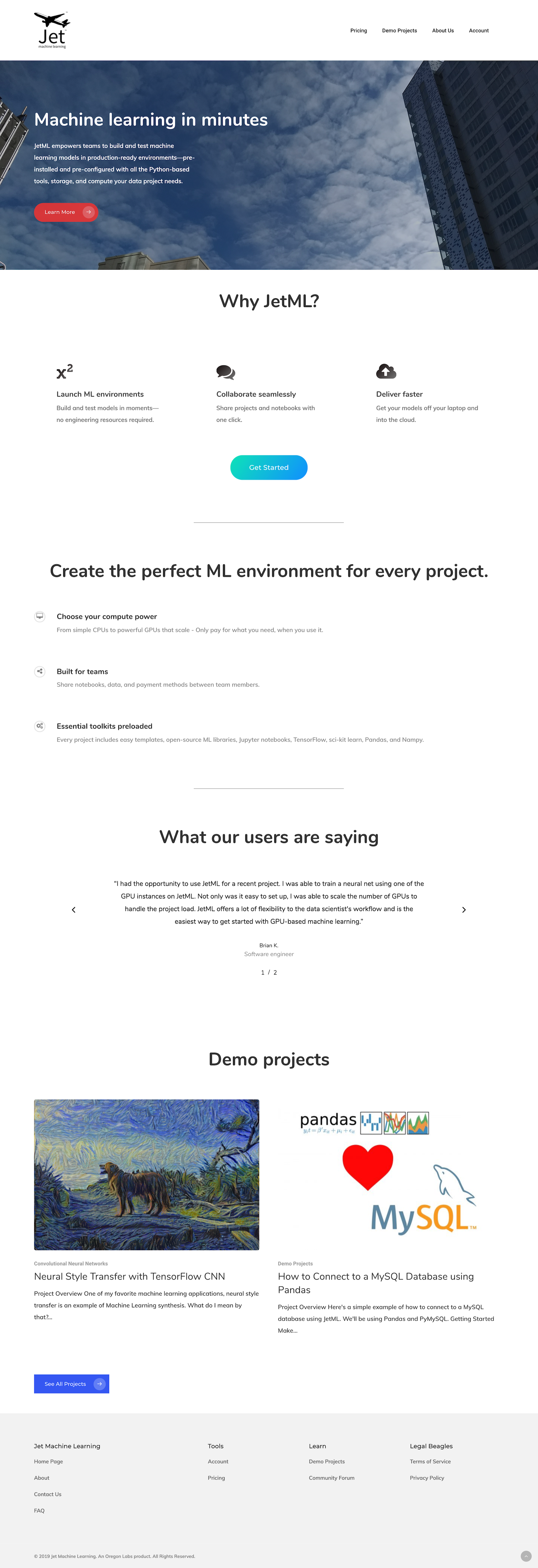 Website content and messaging for machine-learning startup